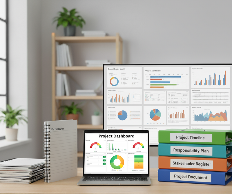 Templates for planning, delivery, reporting, PMO, Agile, RAID logs, dashboards, charters, and more.